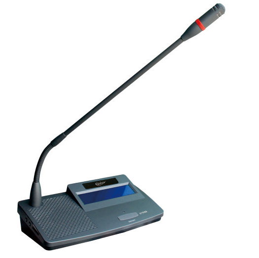 ◆ 具有可插拔式鵝頸可繞性麥克風桿,并具有發言指示燈環; ◆ 單元由系統主機供電。輸入電壓為DC24V,屬于安全范圍; ◆ 具兩組3.5mm立體聲輸出插座,可作錄音及連接MIC用; ◆ 單元具有8芯插座用子系統“T”型連接;內置高保真揚聲器及外接耳機插孔; ◆ 可繞式電容麥克風,并配可更換式防風罩; ◆ 話筒桿具有加長型可供選擇;麥克風具有雙色燈環; ◆ 系統中主席單元不受限制,并可置回路中任何位置; ◆ 具有一組輸出插孔和一組無線MIC輸入插孔(可選項); ◆ 具有強制切斷代表單元麥克風發言的優先功能和主席優先的提示音; ◆ 具有主席專有模式:主席按PRIO鍵關閉發言狀態的代表單體后,所有代表單元不能在開啟,直至該主席單元結束發言關閉麥克風; ◆ 內建高品質喇叭(當麥克風開啟時,喇叭自動靜音); ◆ 內含會議麥克風單元連接線; ◆ 符合國際會議設備電器認證標準(IEC60914)及國際安規標準UL或CE認證; ◆ 頻率響應:80Hz~16kHz;靈敏度:-44dB±2dB; ◆ 咪桿長度:390mm;外觀尺寸:207mmX117mmX60mm;參考講話距離:15cm~50cm;凈重:1kg