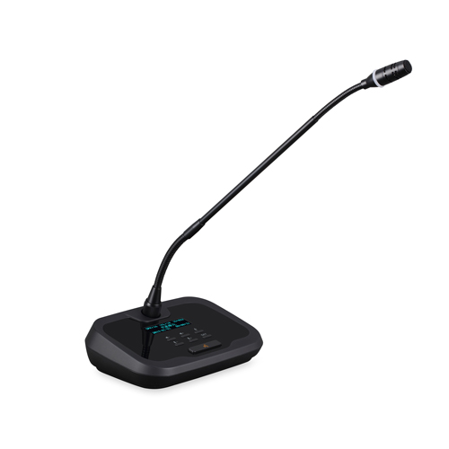 1.符合IEC60914、GBT15381-94國際標準 2.專利外觀設計,整體高檔莊重,符合現代審美標準 3.單元為無源設備,由系統主機供電,輸入電壓為24V,屬安全范圍 4.8芯線接口的單元采用T型8芯連線,線材采用全線鋁箔、水線屏蔽,大大降低強電磁波對線材的干擾 5.網線接口的單元采用超六類網線,“手拉手”線連接方式,帶有兩個RJ45接口,并帶防止松動夾套 6.專業高保真電容咪芯,拾音靈敏、語音清晰,帶寬達到20Hz~20KHz 7.采用防干擾電路設計,可防止手機等電子產品的干擾 8.★話筒頭部帶雙色發言燈環,單元發言時燈環為常亮紅色,單元申請發言時燈環為常亮綠色 9.發言開關按鍵帶透光發言圖案,發言時常亮 10.帶2.23寸高亮度全視角OLED顯示屏, 顯示內容清晰,可以顯示單元參數、日期時間、發言音量、監聽音量等,清晰了解當前的使用情況 11.★話筒帶發言計時功能 12.話筒單元帶有耳機輸出口, 并帶有音量調節按鍵,可以自由選擇輸出方式并調節其音量 13.采用“手拉手”連接方式,支持熱插拔,方便安裝和維護 14.★發言單元可申請茶水、咖啡、紙、筆、服務人員等服務 15.主席單元具有批準代表的發言申請功能; 16.★主席單元不受發言人數限制; 17.主席單元具有全權控制會議秩序的優先功能; 18.主席單元的連接位置不受限制; 19.一個系統可以支持多個主席單元同時使用。